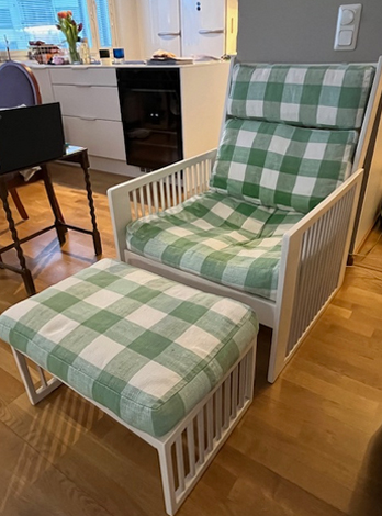 Tässä alla vielä ennen kuva tuolista, aikamoinen muutos saatiin aikaan uusilla pehmusteilla!