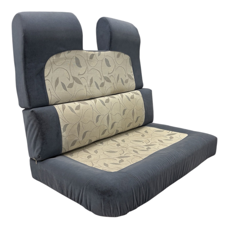 Tässä asuntoauton istuin- ja selkänojapehmusteet before and after. Näissä meidän super suosittu Kabal verhoilukangas, mitä löytyy paljon eri värejä! Asuntoauton pehmusteet