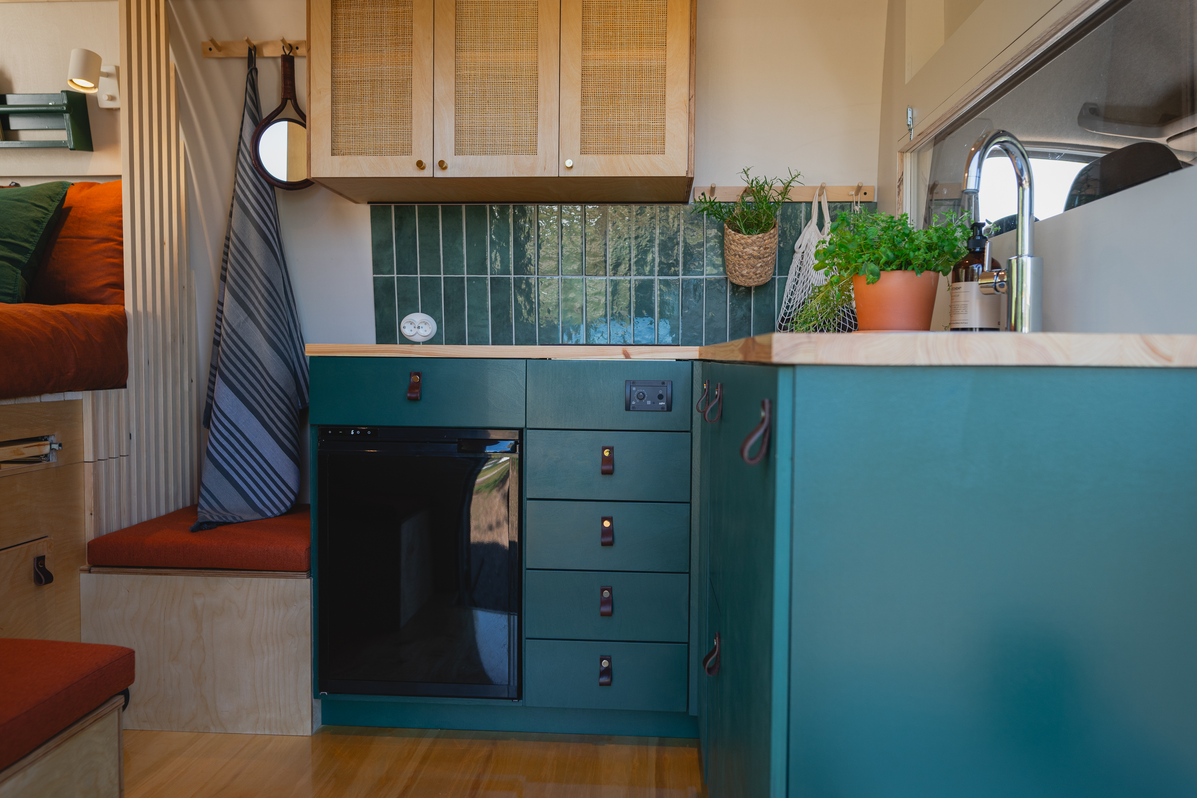 Istuinpehmusteet tehtiin 5cm paksuisesta jämäkästä istuinkäyttöön soveltuvasta vaahtomuovista ja päälliskangas on meidän super suosittu Kabal verhoilukangas terrakotan värisenä. Tämä väri sopii täydellisen hyvin yhteen vihreän/petroolin sävyjen kanssa.