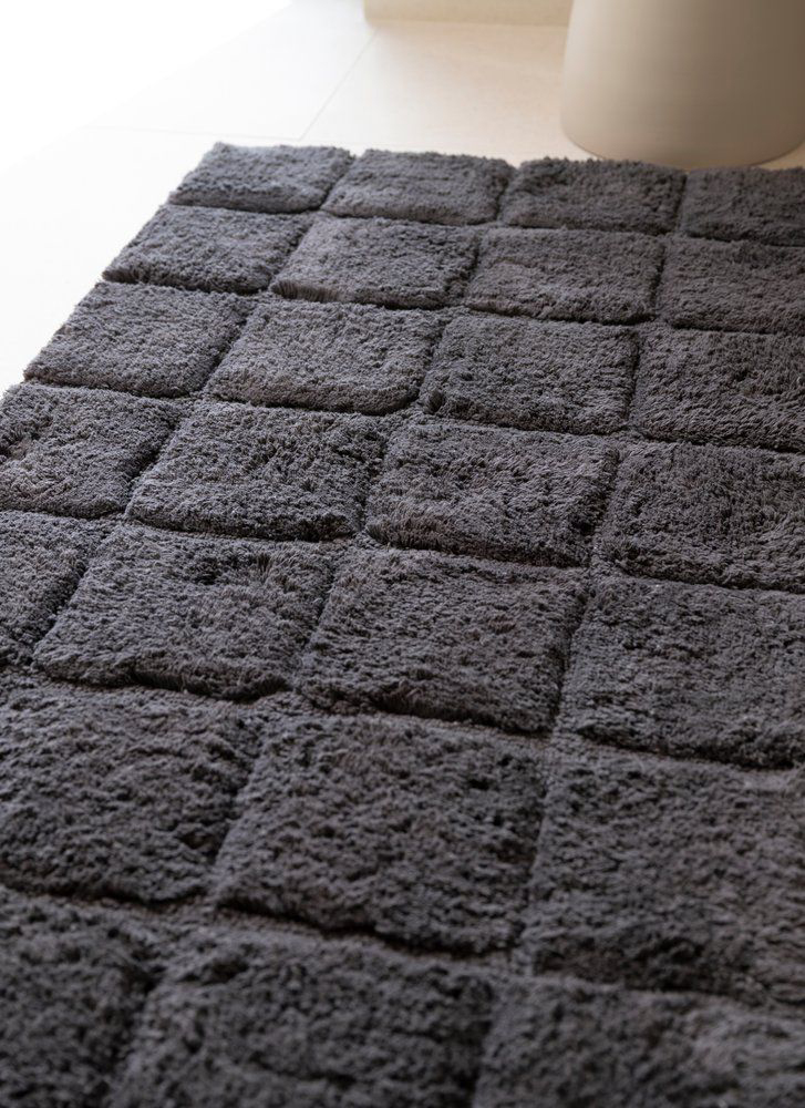 -Isokokoinen, paksu ja pehmeä ruutukuvioinen tuftattu kylpyhuonematto liukuestepohjauksella.