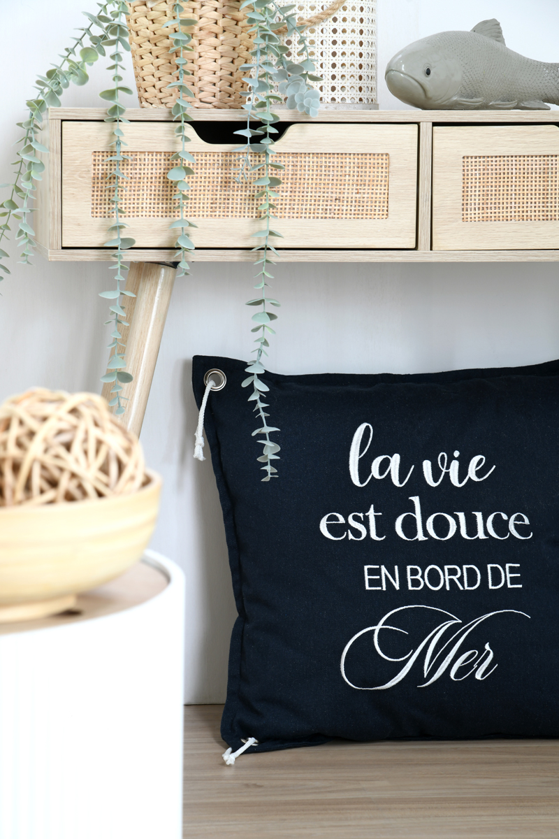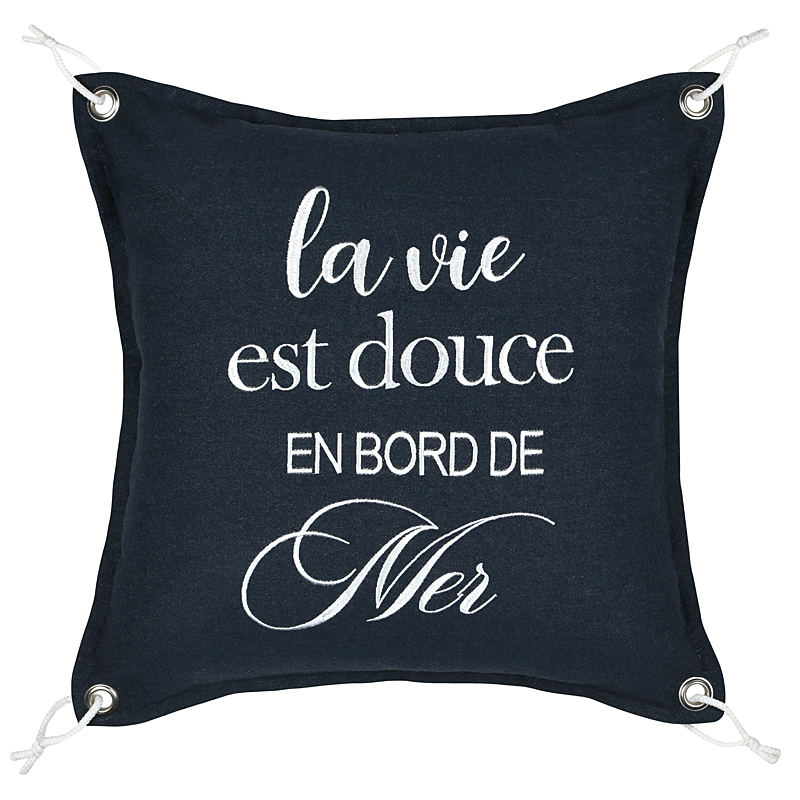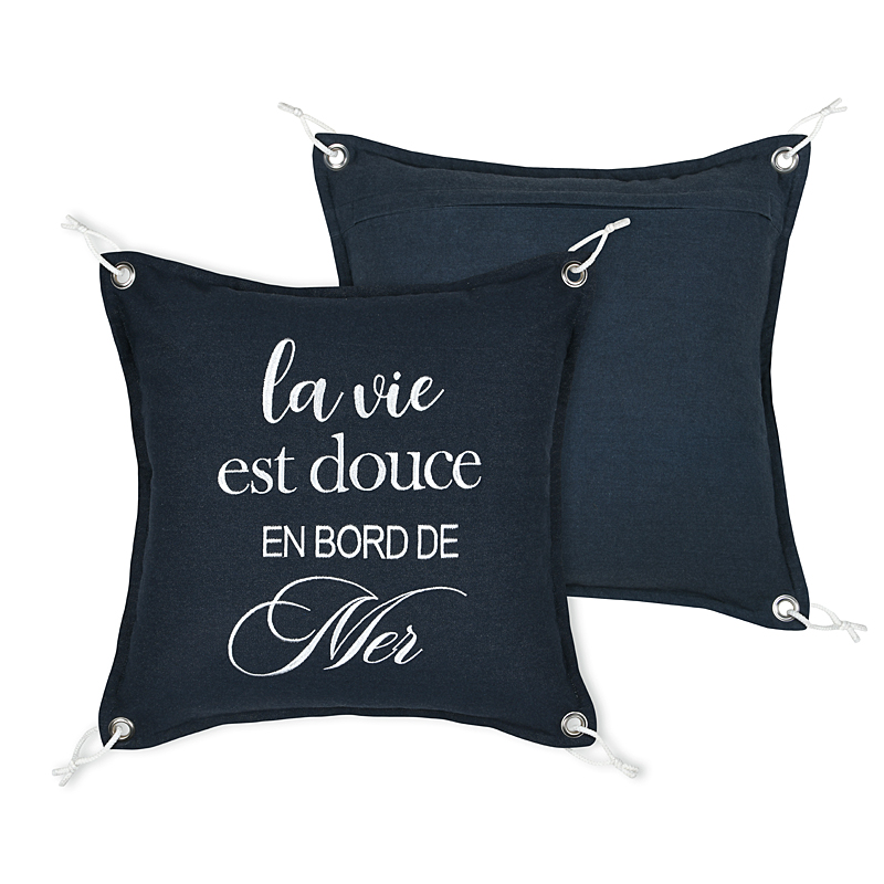 -Upea merihenkinen koristetyyny. Tyynyn kulmissa on kivat yksityiskohdat,valkoiset lenkit.