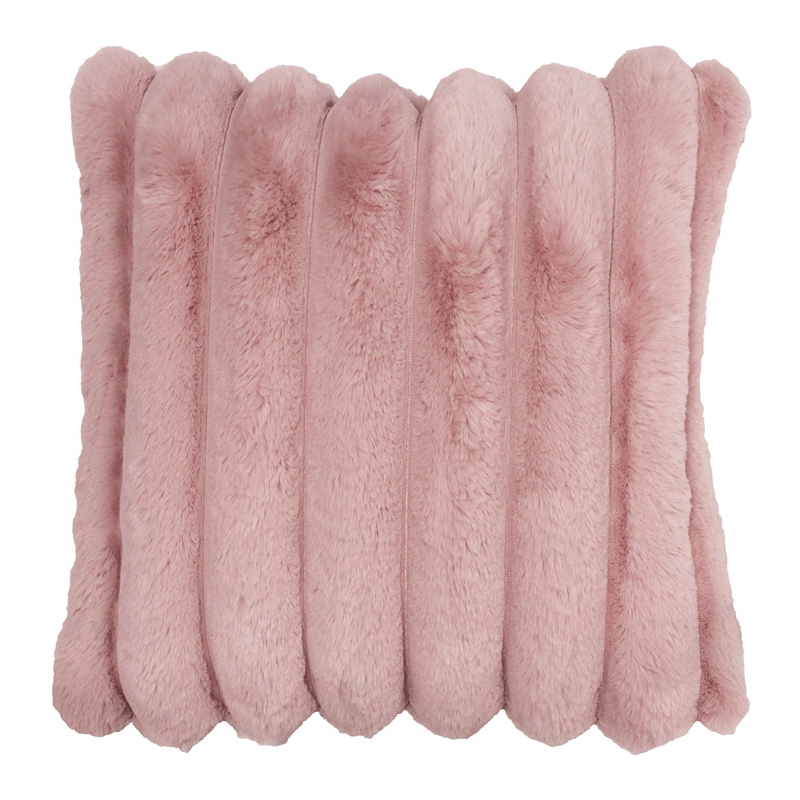 -Ylellinen ja erittäin pehmeä ja muhkea tekoturkis koristetyyny leveillä raitatikkauksilla.