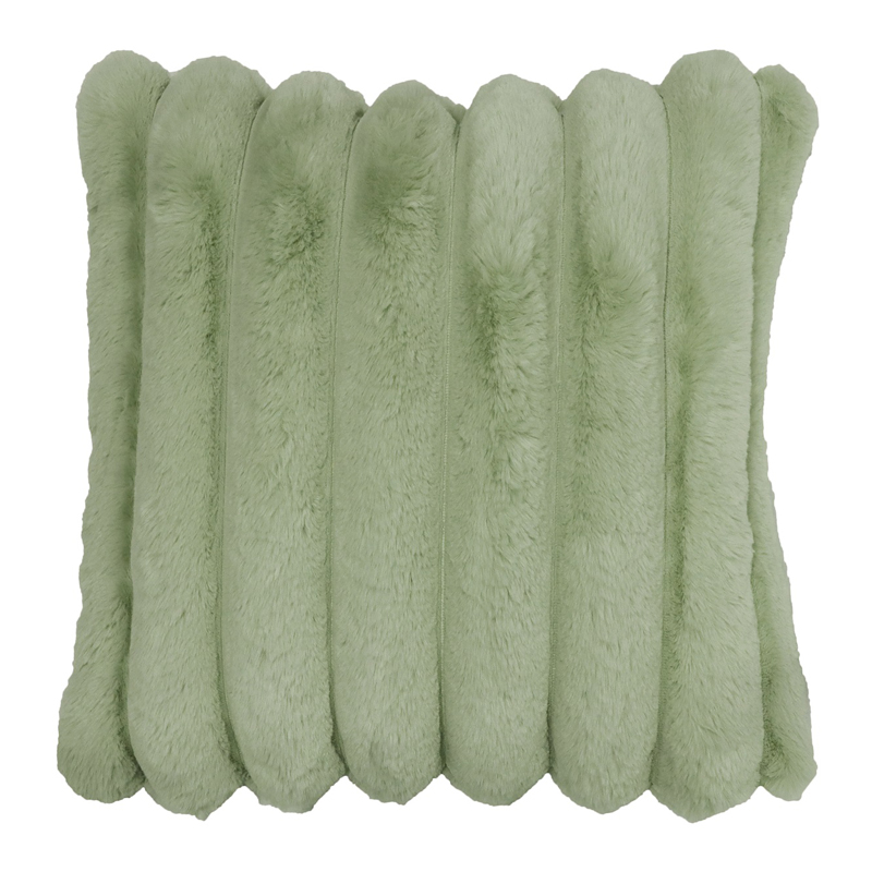 -Ylellinen ja erittäin pehmeä ja muhkea tekoturkis koristetyyny leveillä raitatikkauksilla.