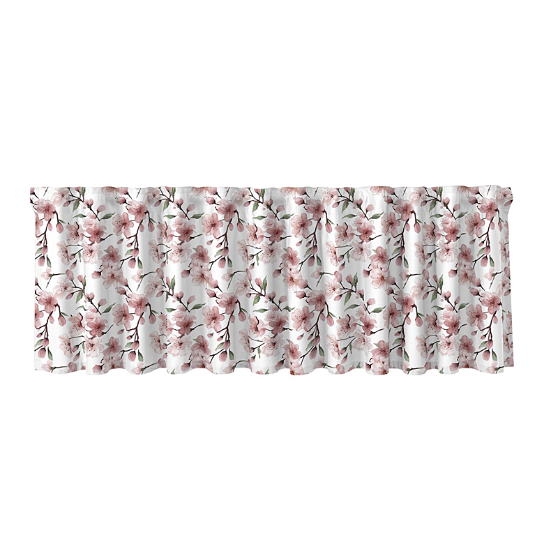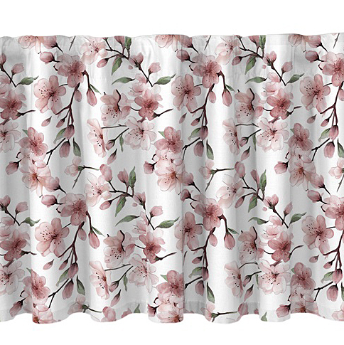 Kaunis omenankukka kuosillinen kappakangas. Valmiiksi ommellut kujat verhotangolle yläreunassa. Ompele omien mittojesi mukaan sopivan pituiseksi.