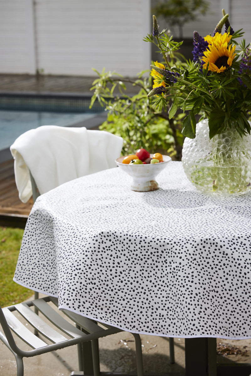 PYÖREÄ Muoviliina Pilkku musta/valkoinen Ø180cm