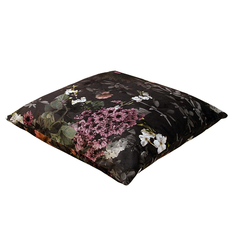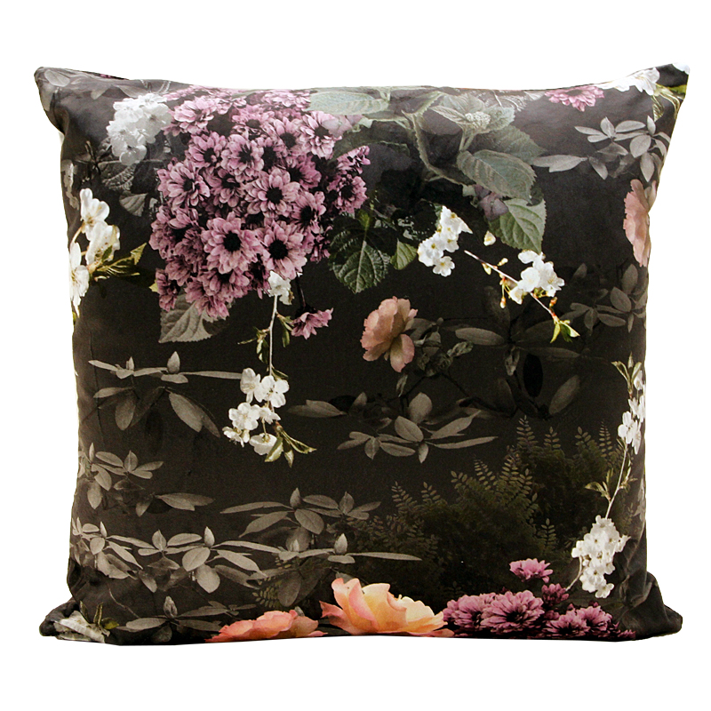 -Ihanan kaunis samettipintainen, kukkakuviollinen koristetyyny.