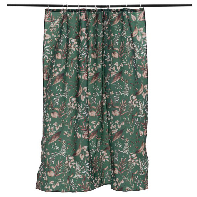 -Ihana vihreä lehtikuviollinen tekstiili suihkuverho.