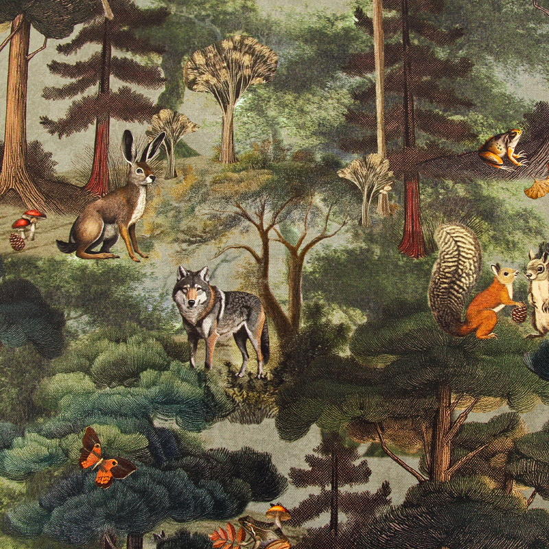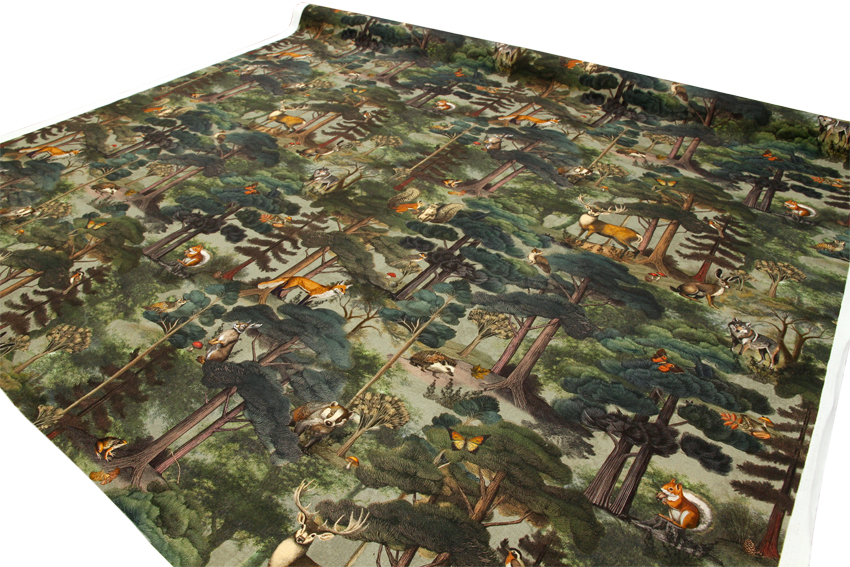 Ihana uutuus! Upea metsä aiheinen kangas kaikenlaiseen sisustusompeluun ja kevyeen verhoiluun.
