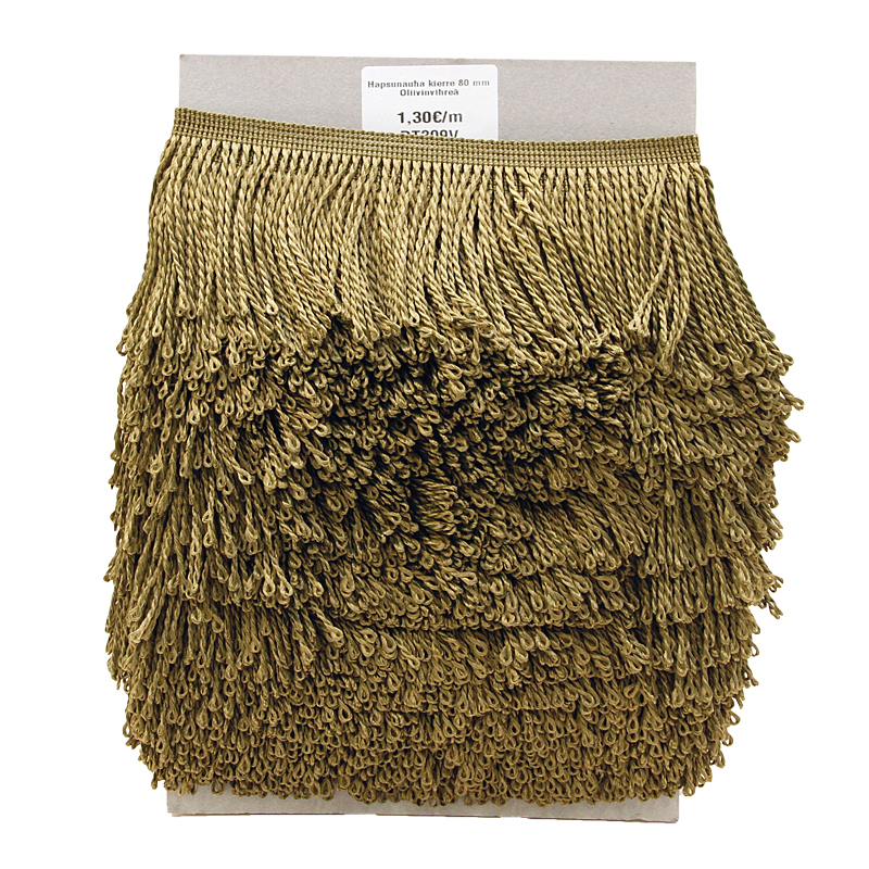 - Käyttökohteet: Tekstiilien viimeistely, keppihevosten tuunaus, sisustustyynyjen reunat, varjostimien reunukset, yms. kaikenlainen sisustusompelu