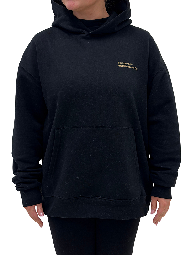 -Tampereen Vaahtomuovin oma huppari. Hupparissa on edessä kenguru tasku.