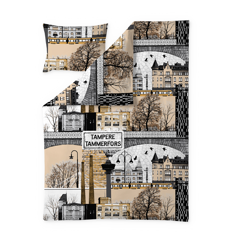 -Hieno ja upea Tampere kuosillinen pussilakanasetti, mikä on valmistettu pehmeästä 100 % puuvillasta.