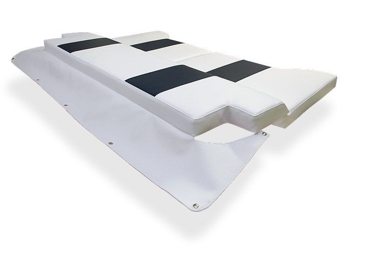 Valkoisella keinonahalla päällystetyt venepatjat.