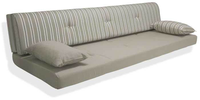 Tässä taittopatjasarjassa raikkautta tuo raidallinen selkänoja.