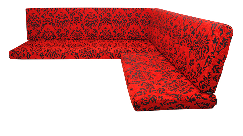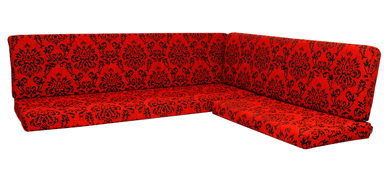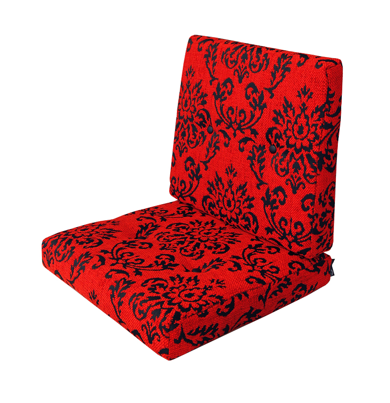 Istuintyyny selkänojalla, punainen barokki kuvioinen verhoilukangas