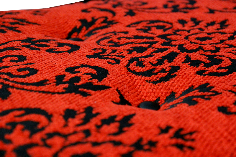 Istuintyyny, punainen barokki kuvioinen verhoilukangas.
