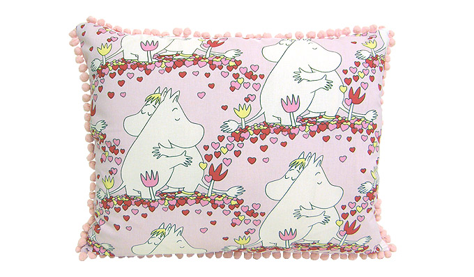 Muumi kankaasta ommeltu sisustustyyny vaikkapa lastenhuoneeseen tai muuten vaan muumifaneille:) Reunoihin ommeltu pompulanauha lisäämään tuotteen suloisuutta.