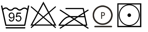 Tarvittaessa päällisen pesu 70-95°C nurin- päin, varovainen rumpukuivaus alennetussa lämpötilassa”.